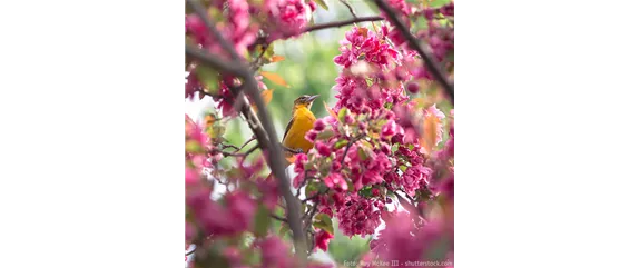 Der Zierapfel (Malus-Hybride) ist ein wahrer Allrounder. Im Frühling locken die Blüten Bienen und Schmetterlinge an. Im Herbst haben Vögel und andere Kleintiere ihre Freude an den Früchten.