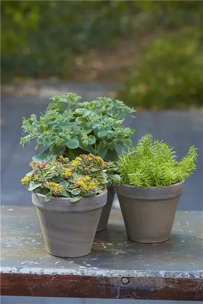 Mauerpfeffer (Sedum-Hybride) gehört zu den unkompliziertesten Pflanzen in Ihrer grünen Herbstoase. Da die Sukkulente in ihren Blättern das Wasser speichert, ist der Mauerpfeffer vielseitig einsetzbar. Er übersteht mit Leichtigkeit längere Trockenperioden und kann deshalb auch karge und trockene Standorte, wie Ritzen oder Fugen besiedeln. Mauerpfeffer ist somit ein wahrer Überlebenskünstler.